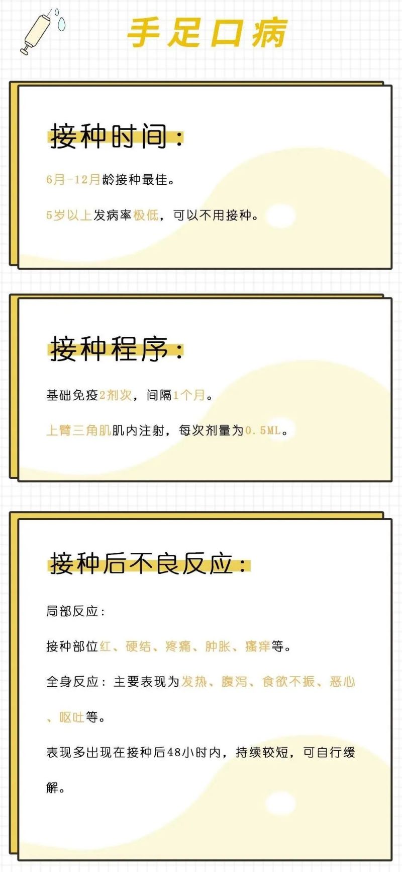 健康提示明确,接种EV-A71疫苗可有效预防EV-A71感染引起的手足口病和其他相关疾病,并减少手足口病重症和死亡的发生。为尽早发挥保护作用,鼓励儿童在12月龄前完成全程接种,1岁及以上儿童越早接种越好。