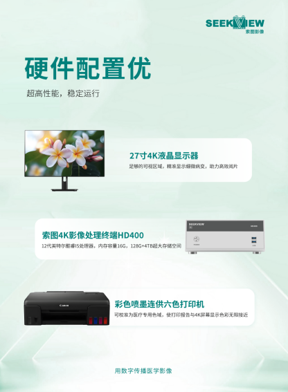 索图4K内镜图文工作站不仅在影像质量上表现出色,其硬件配置也相当硬核。工作站主机搭载了英特尔酷睿I5-12400处理器,配备16G DDR4 3200MHz内存和128G固态+4TB机械硬盘,确保系统运行流畅,数据处理高效。