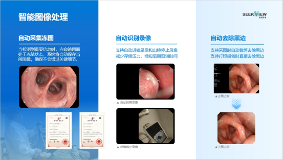 在传统的内窥镜检查过程中,由于设备成像角度或画面比例限制,常常会在图像周围出现“黑边”现象,这不仅影响影像美观,还可能干扰医生对病灶区域的判断,同时也降低了报告输出的专业性。而AI技术的应用,能自动去除这些黑边。AI算法能够智能识别影像中的有效区域,无论是采图时还是打印报告时,都能实现自动裁剪去除黑边,使影像更加清晰、整洁。这不仅提升了影像的专业度,还优化了医生的诊断体验,使报告更加易于阅读和理解。