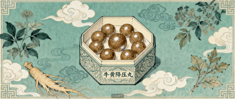 牛黄降压处方来源于天津市名老中医陈方舟临床经验方,系借鉴古方“牛黄清心丸”“安宫牛黄丸”立法之旨,采用调节机体阴阳虚实、使之平衡之法,反复筛选研制而成的临床经验方。组方由牛黄、羚羊角、珍珠、水牛角浓缩粉等14味中药组成。适用于肝阳上亢型高血压,对于改善症状,降晨峰、保护心脑肾效果尤为显著。该药平稳降压,安全有效,丸重不到常见大蜜丸的五分之一,深受患者欢迎。